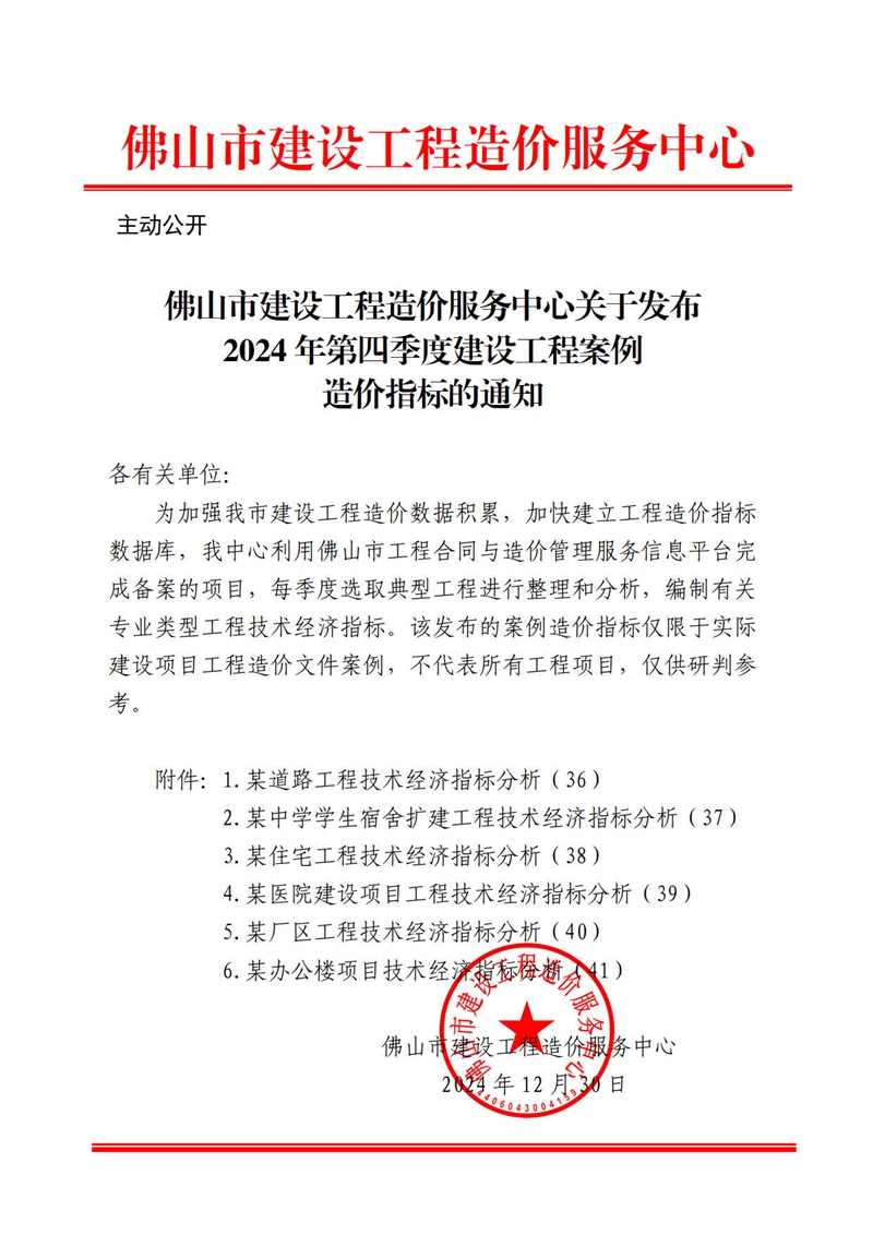 轉(zhuǎn)發(fā) | 佛山市建設(shè)工程造價服務(wù)中心關(guān)于發(fā)布2024年第四季度建設(shè)工程案例造價指標(biāo)的通知